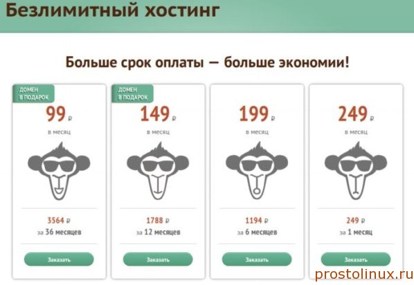 Как видите, всего 99 рублей в месяц, если на три года. Домен в подарок нужно брать осторожно: кто будет платить в следующие годы и на кого он будет оформлен? Пока на эти вопросы вы не ответите, не берите домен.