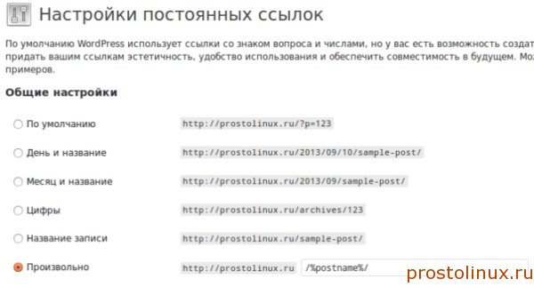 Но начать нужно с того, что просто необходимо сделать после установки wordpress - это настроить человеко понятные url. Для этого идём в параметры WordPress - Постоянные ссылки и в последнюю графу вписываем такое значение: /%postname%/